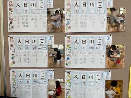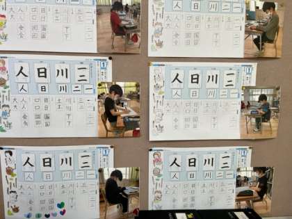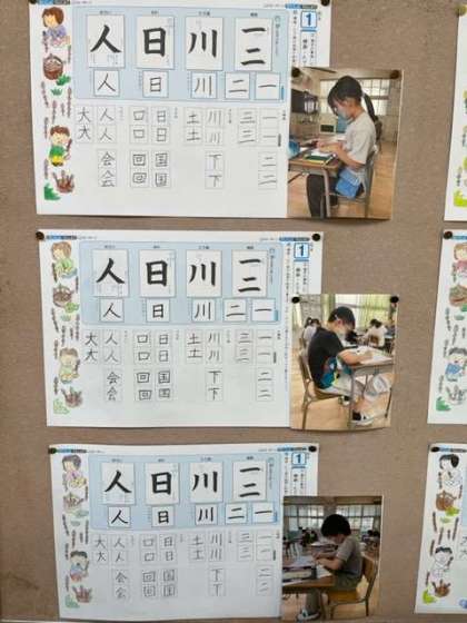 3年生の教室には書写の時間の様子の写真が掲示してありました。みんな姿勢良く美しい文字を書けていますね。