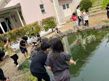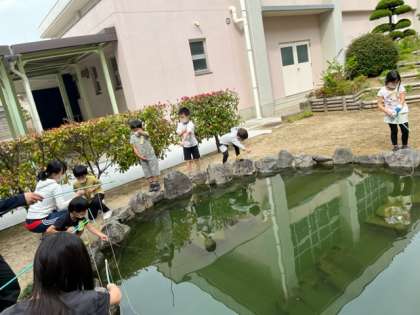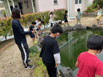 2年生がザリガニつりをしました。生活科や図工科の学習、命を大切にする道徳の学習につながります。