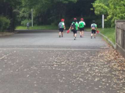 お弁当前のオリエンテーリングでは、班で協力してポイントを回りました。