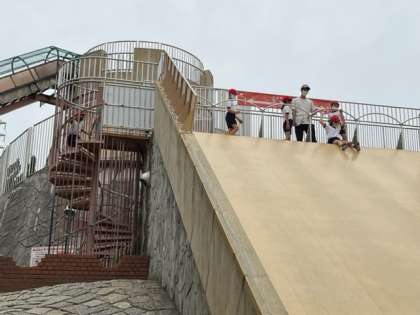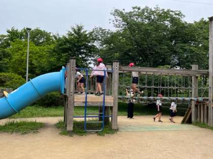 滑り台の他にも大きなアスレチックもあり、楽しめています。