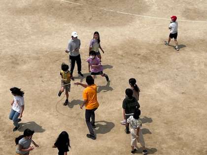 なわとびタイムです。どの学年の子どもたちもとても上達しています。1年生が縄を回して跳んでいました。すごいね。