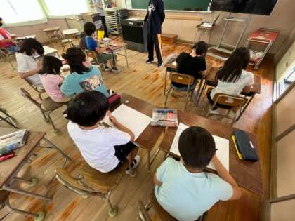 2時間目は「いけっこまつり」のお店の準備です。縦割り班で集まって、飾りを作ったり、看板を作ったりしています。