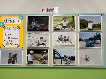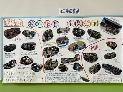 掲示板に遠足の思い出の掲示がありました。それぞれ工夫を凝らしていますね。