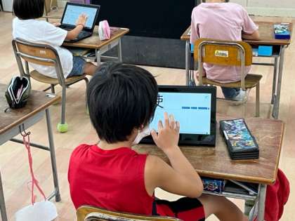 今日野朝の学習の時間には、読書をしている学年や端末でデジタルドリルをしている学年など様々な方法で学びを進めていました。