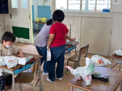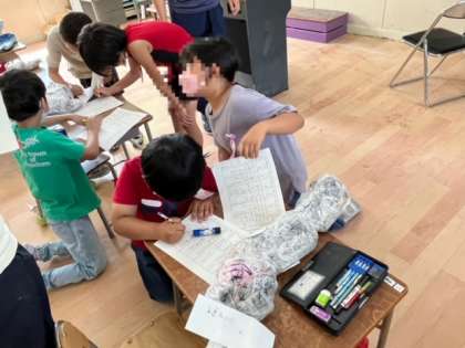 3年生が作っていた「クシャクシャぬいぐるみ」の相互鑑賞会をしていました。友だちの作品の素晴らしいところをたくさん見つけていました。