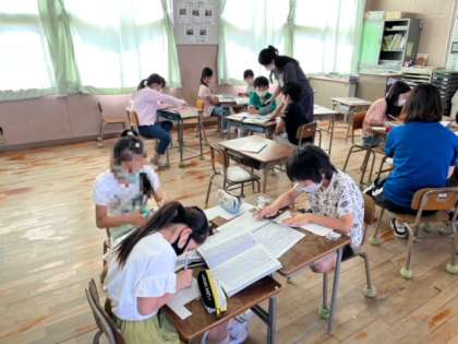4年生の国語科の時間に「新聞作り」をしていました。記事を集めて、グループごとに持ち寄って1つの新聞にします。任された記事作りにみんな真剣です。