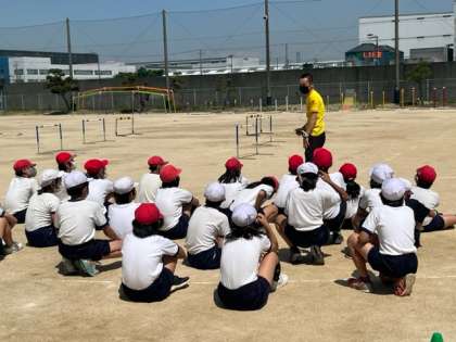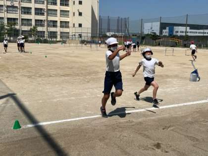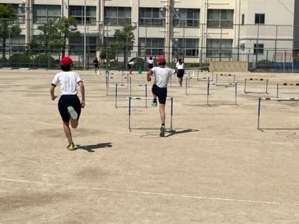 6年生が体育科の時間に、ハードル走と走り幅跳びの学習をしていました。技能面での理解と動きをリンクさせると記録は伸びます。がんばれ!