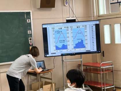5年生が社会科で北海道の暮らしについて調べていました。家の特徴や寒さ対策について、大阪とは違うところに気付いていました。