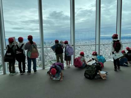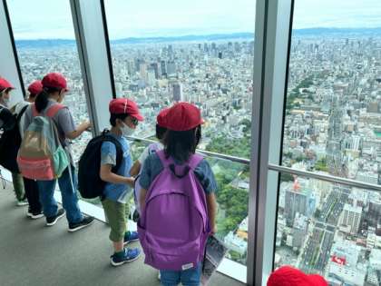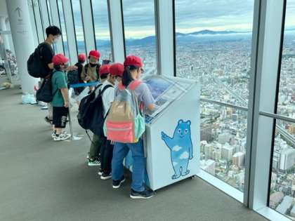 ハルカスは300メートルだそうです。東西南北全ての方向を見ます。港大橋も見えました。