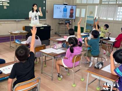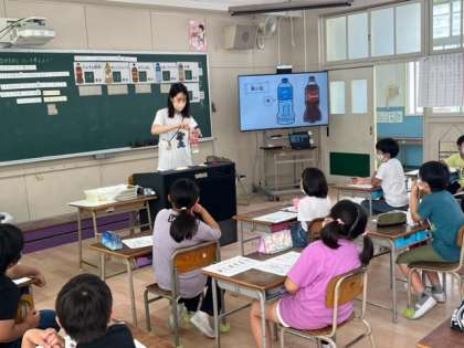 3年生が食育の学習で「飲み物」について考えていました。ペットボトル飲料にどのくらい砂糖が入っているのか、先生が実演していました。意外と多いのでびっくりしていました。