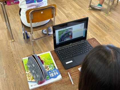 5年生が理科の時間に台風の進路について調べていました。台風の進路予想はかなり進歩しています。小学生も気象予報士のように予想できるかもしれません。