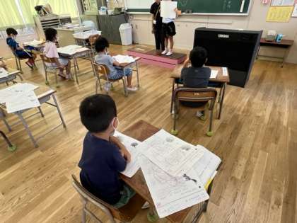 1年生が国語の説明文で学習した動物のクイズをしていました。前に出た人がヒントを読んでみんなで当てます。ヒントを出す人が上手に読めるとみんなから拍手をもらえます。