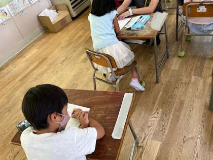 1年生が1学期の振り返りをしていました。「給食当番をがんばった」「勉強をがんばった」「そうじをがんばった」などたくさんがんばりました。終わった子はデジタルドリルをしていました。