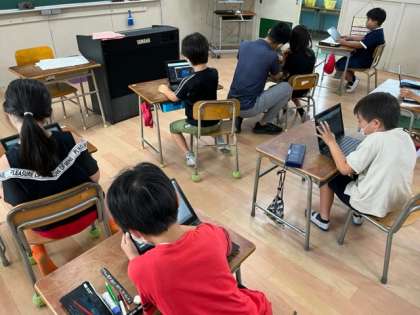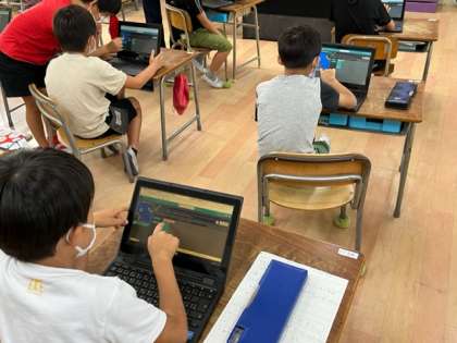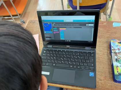 3年生の総合的な学習の時間に「プログラミング」をしていました。ブロックを組んで考えた通りに動かせるかどうか挑戦していました。リピートが出てきていましたが、使いこなせる子がたくさんいました。