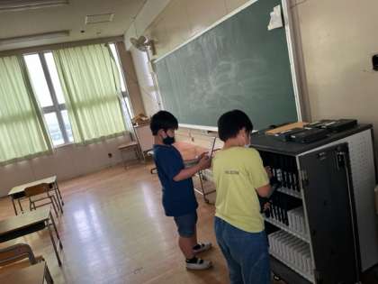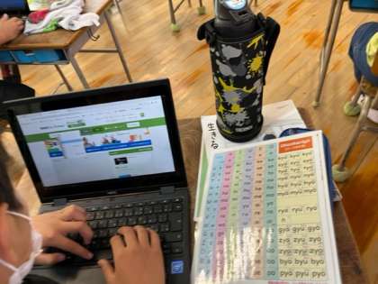 午前中は雨が降っていたので、静かに教室で過ごしています。4年生は端末を使ってNHKの動画を見ていました。チャイムの前にはサッと片付けることができます。ルールをきちんと守れますね。