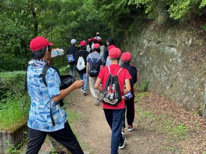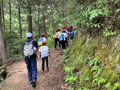 往復1時間強の登山です。足元が滑るので頑張りましょう。