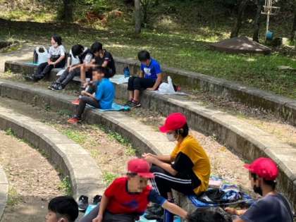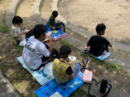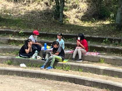 お楽しみのお弁当の時間です。おなかぺこぺこたからしっかり食べました。