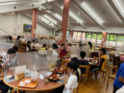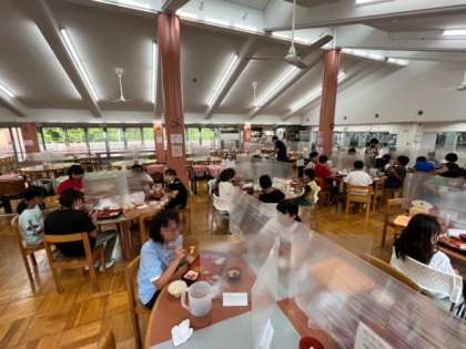 > 食事係が今日の反省と明日の飯盒炊爨への意気込みを話していただきます。たくさん動いたのでたくさん食べられるそうです。