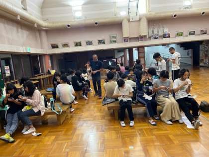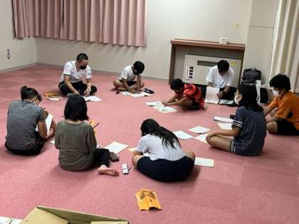 キャンプファイヤーの星に願い事をして、宿舎に戻りました。アイスクリームをいただき、班長会議をし、みんなは寝る用意です。おやすみなさい。