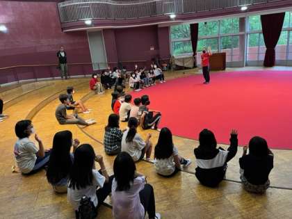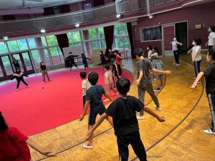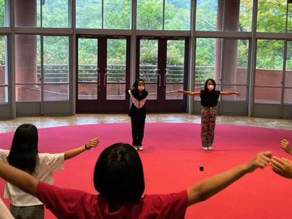 ラジオ体操で体を目覚めさせ、先生のお話を聞きました。今日は飯盒炊爨が1番の行事です。その前に朝ごはん食べて力を出しましょう。
