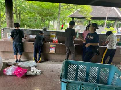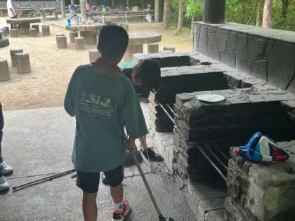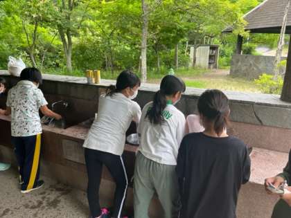 ごちそうさました後は、食器や鍋をピカピカになるまで磨きます。かまどの灰もきれいに片付けます。