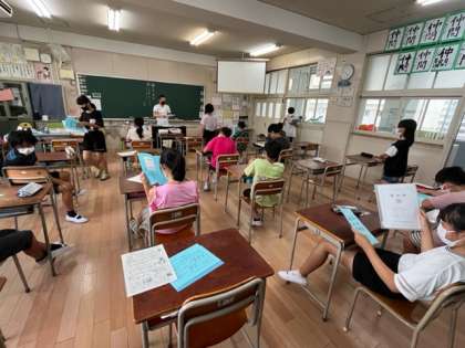 6年生が担任の先生から通知表をいただきました。1学期の自分のがんばりを見直していました。とは言え、成績は気になりますね。