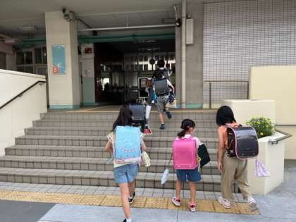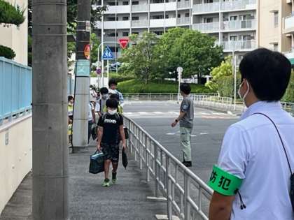 今日8月26日から2学期の始まりです。子供たちはたくさんの荷物と思い出を持って元気に登校してきました。港警察から見守りの警察の方、PTAから見守り当番の保護者様、地域の見守り隊の皆様に見守られて安心して登校できました。