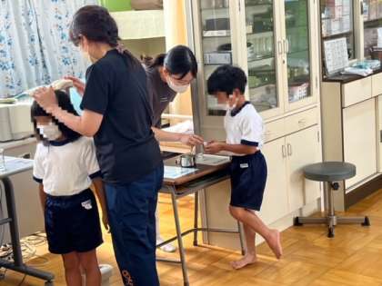 今週は発育測定がありました。1年生は、養護教諭実習の先生の指導で、手指の汚れのチェックをしました。みんなピカピカさんだったのかな?