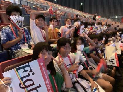 トップレベルの選手のスピードやシャトルを打つ音など普段見られない動きに感動です。応援も声を出さずに頑張ります。