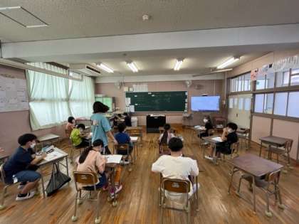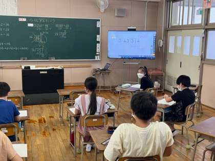 4年生が算数科の時間に割り算を筆算で解いていました。3桁わる2桁で、商の見通しが難しい問題です。答えを導くために考え込んでいました。