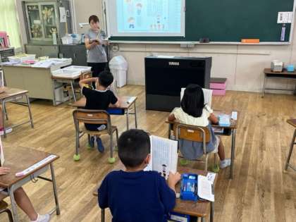 1年生は「みんなの前で話しましょう」の学習です。夏休みの思い出を題材にして、お話をするための準備をします。音読がとても上手だから、お話も、上手にできるでしょう。