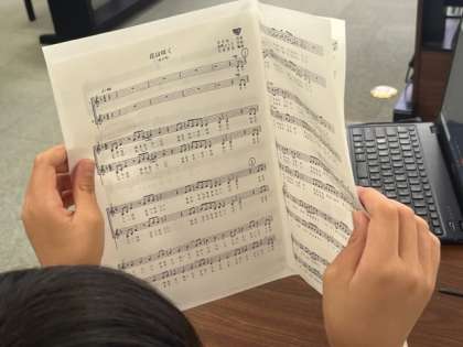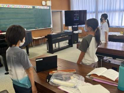 5年生が音楽の時間に歌を歌っていました。とは言え、コロナ禍のことなのでハミングで音程の高さをそろえていました。「花は咲く」の歌は二部合唱ができるように学習しました。