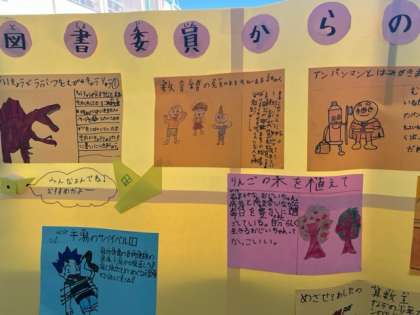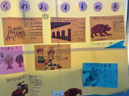 図書委員会の活動で、「おすすめの本の紹介」を作り、掲示しています。たくさん読んで欲しいです。