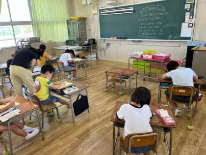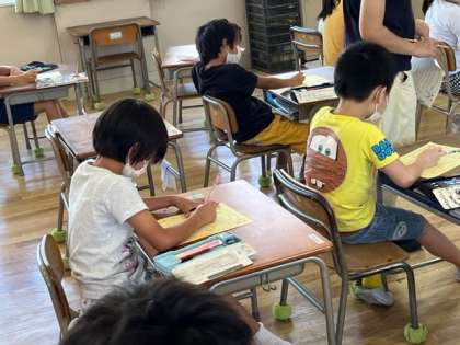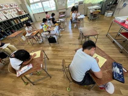 2年生が敬老の日に配ってもらう手紙を書いていました。自分の目標も書いて、地域のお年寄りのみなさんに聞いてもらいます。