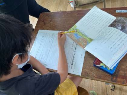 文章をすっかり読んで、見つけた中からクイズを作ります。友達と相談しながら、オリジナルのクイズ作りをしました。