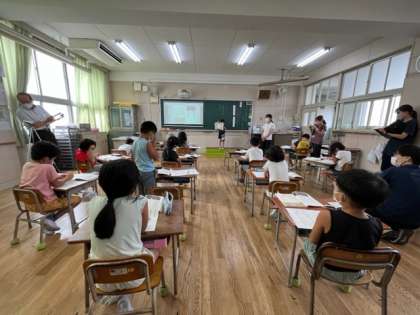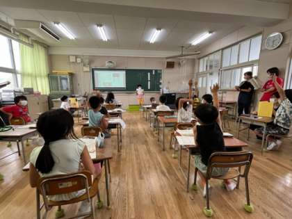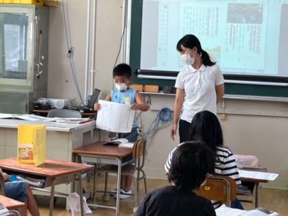 作ったクイズは、みんなの前で発表します。答えたくてたくさんの手が上がりました。
