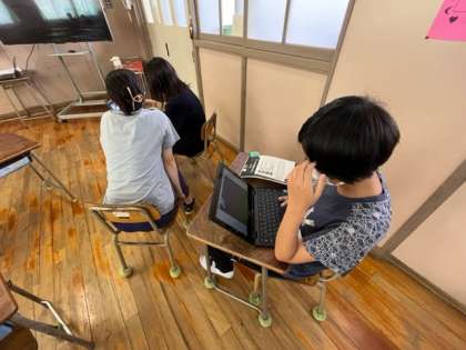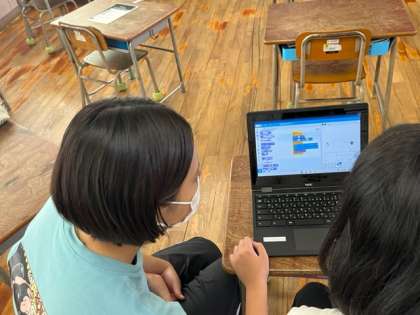 プログラミングクラブは、スクラッチを使ってオリジナルのゲームを作っていました。ブロックの組み方に苦労して、試行錯誤していました。