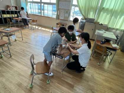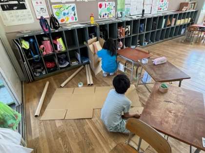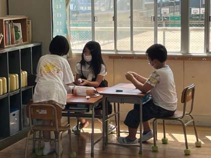 2年生が秋祭りの準備を始めています。たこ焼き屋さん、ラーメン屋さん、射的屋さん、お神輿とこれから楽しいお祭りにするそうです。