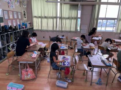 3年生が図工科の水彩画を描いていました。絵の具の透明感を活かして仕上げていました。