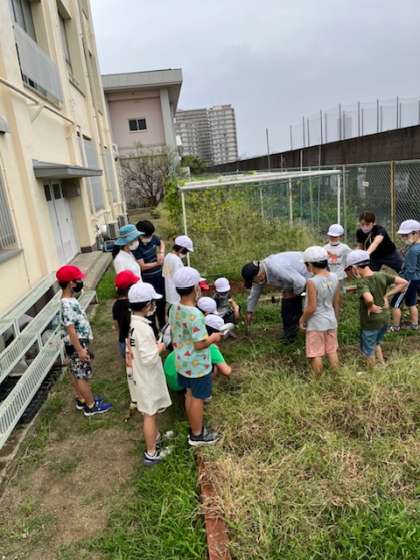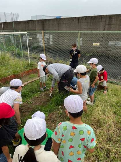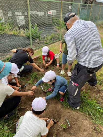 2年生がいもほりをしていました。春につる苗を植えてから育ててきました。大きなおいもになったかな?