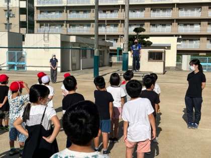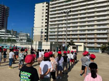 今朝は、全校朝会でした。今月の目標は「ろうか、かいだんを歩く」です。走ると事故の元です。気をつけて過ごしてください。