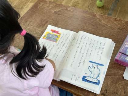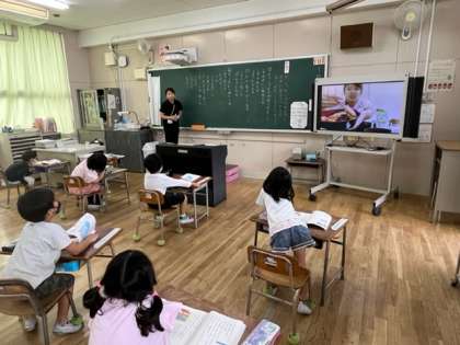 1年生が国語科「サラダでげんき」を学習していました。いろいろな動物が、サラダに入れるといいものを教えてくれたそうです。今日は主人公のりっちゃんにお手紙を書く準備です。