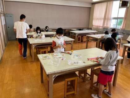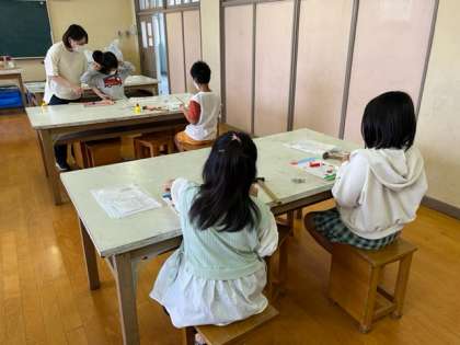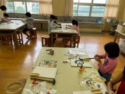 3年生は図工科の学習で「ビー玉ゲーム」つを作っていました。トントンとくぎ打ちをしています。楽しいゲームができそうですね。
