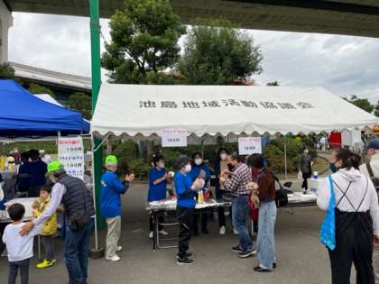 今日10月30日は、第48回港区民祭りです。池島地域もブースを出して頑張っておられます。