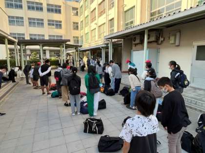 朝早くからたくさんのお家の皆様、寮の先生方に来ていただきました。元気にあいさつして、行ってきます。