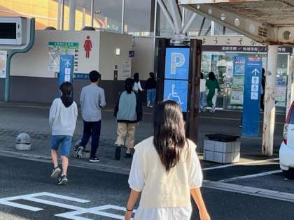 針テラスにつきました。少し休憩しています。みんなは、元気にしています。