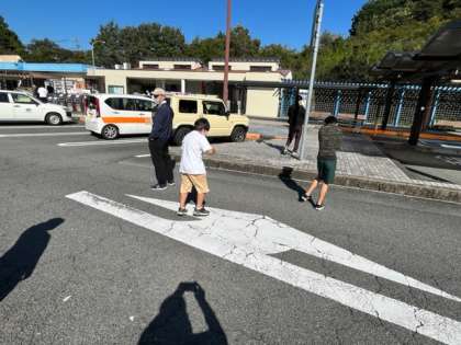 嬉野SAで休憩です。寝ている子もいましたが、みんな元気です。