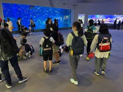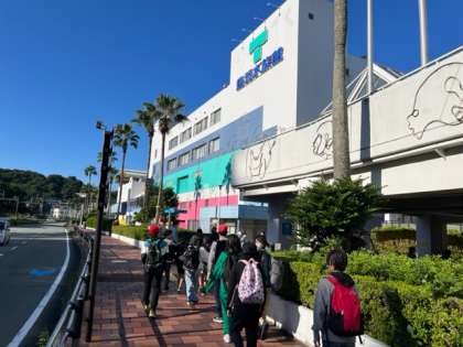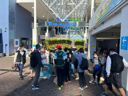 鳥羽水族館に到着しました。入館前に記念写真を撮りました。