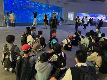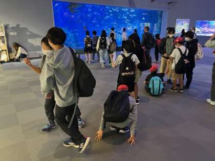 大水槽の前で時間の確認をした後解散です。活動班ごとに自由行動です。リーダーさん頑張ってください。