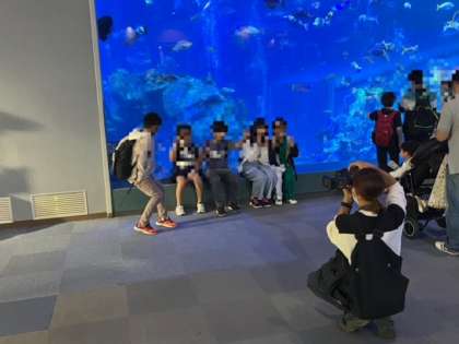 大水槽のウミガメに惹きつけられている班や早速お土産を買いに行く班もあります。いろいろ考えて行動しているね。
